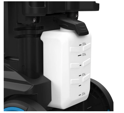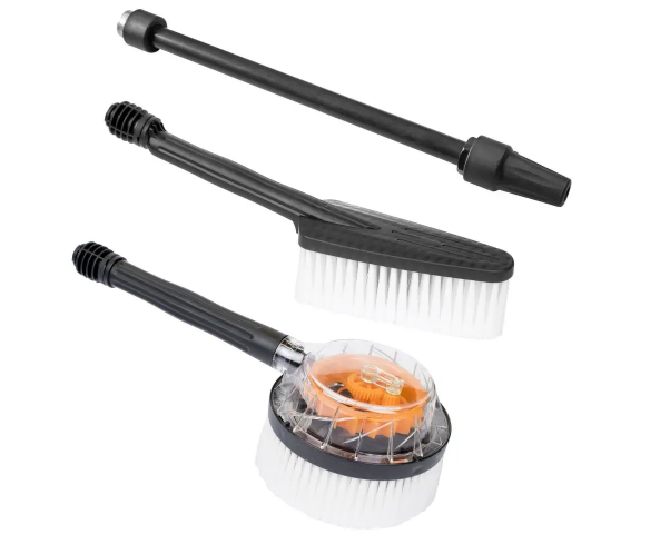 - praktische Halterungen rund um den Hochdruckreiniger für Zubehör und Anschlusskabel