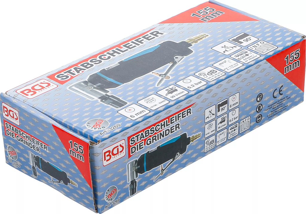 - 1x BGS Druchluft Stabschleifer 90° abgewinkelt 155mm Schleifer Luftschleifer 3269